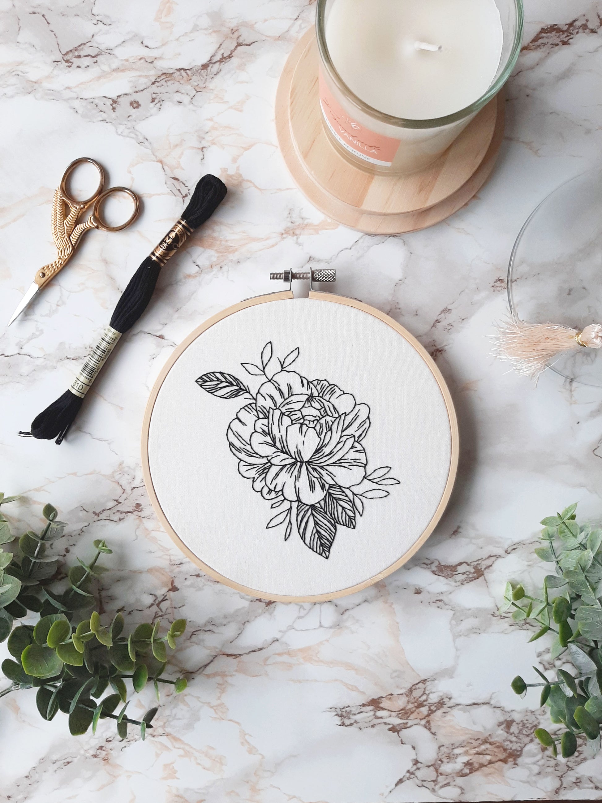 Je hebt alleen nog een schaar nodig en je kan beginnen met je borduurwerk!